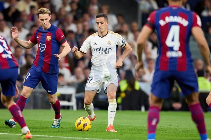 Lucas Vazquez of Real Madrid CF in action during the LaLiga EA Sports match between Real Madrid and Barcelona FC at Stadium Santiago Bernabeu on April 21, 2024 in Madrid, Spain. (Photo by: Alvaro Medranda/ Panoramic)