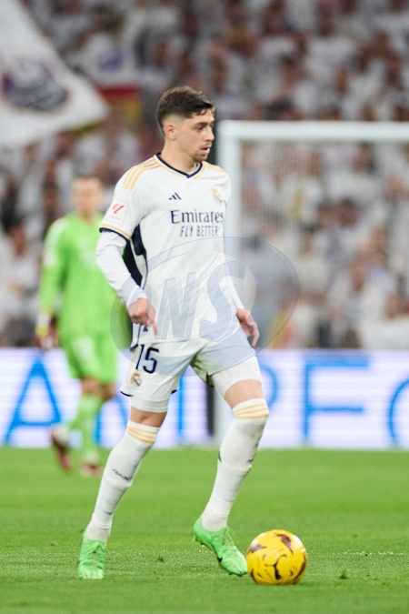 Federico Valverde of Real Madrid CF in action during the LaLiga EA Sports match between Real Madrid and Barcelona FC at Stadium Santiago Bernabeu on April 21, 2024 in Madrid, Spain. (Photo by: Alvaro Medranda/ Panoramic)