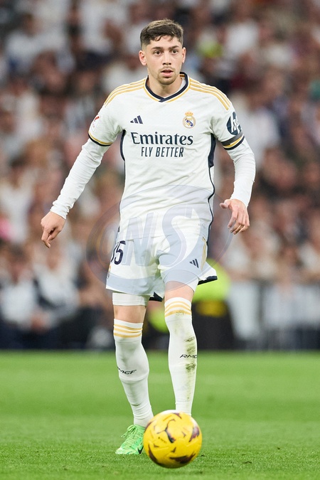 Federico Valverde of Real Madrid CF in action during the LaLiga EA Sports match between Real Madrid and Barcelona FC at Stadium Santiago Bernabeu on April 21, 2024 in Madrid, Spain. (Photo by: Alvaro Medranda/ Panoramic)