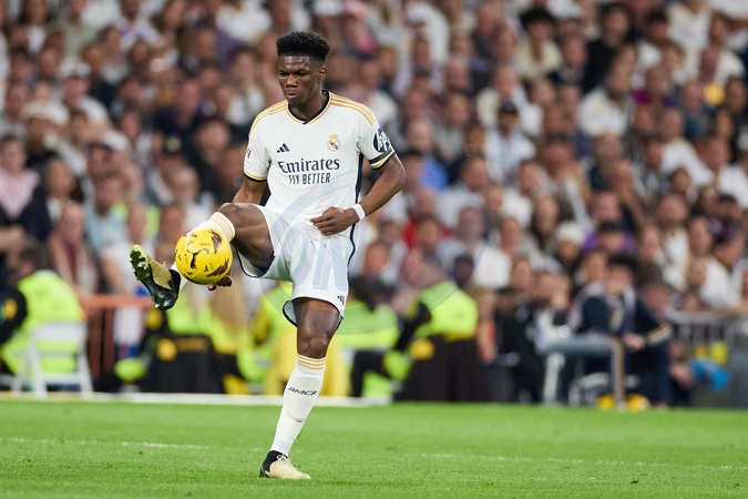Aurelien Tchouaméni of Real Madrid CF in action during the LaLiga EA Sports match between Real Madrid and Barcelona FC at Stadium Santiago Bernabeu on April 21, 2024 in Madrid, Spain. (Photo by: Alvaro Medranda/ Panoramic)