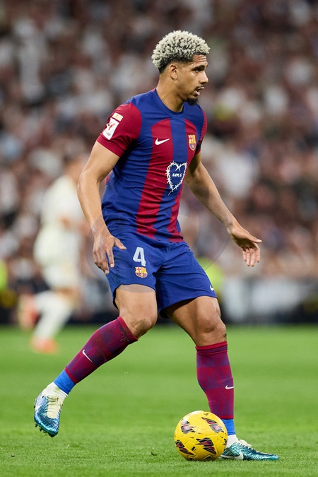 Ronald Araujo of FC Barcelona in action during the LaLiga EA Sports match between Real Madrid and Barcelona FC at Stadium Santiago Bernabeu on April 21, 2024 in Madrid, Spain. (Photo by: Alvaro Medranda/ Panoramic)