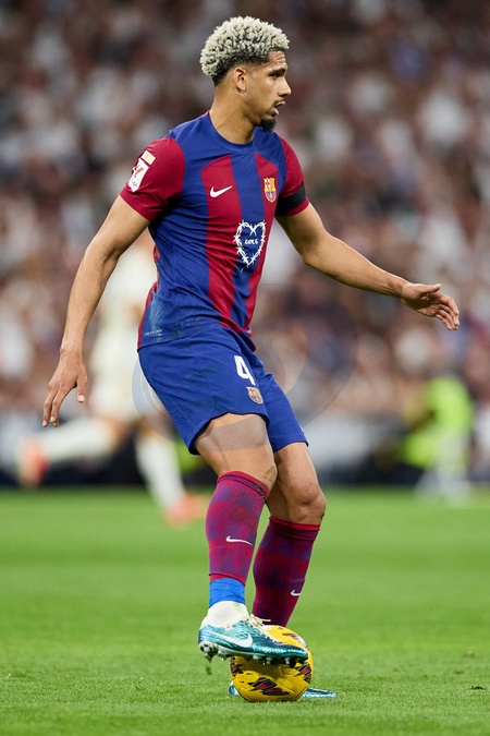 Ronald Araujo of FC Barcelona in action during the LaLiga EA Sports match between Real Madrid and Barcelona FC at Stadium Santiago Bernabeu on April 21, 2024 in Madrid, Spain. (Photo by: Alvaro Medranda/ Panoramic)