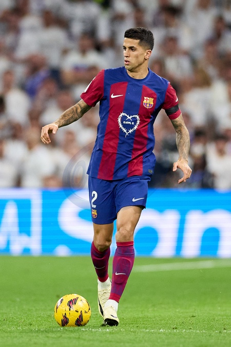 Joa Cancelo of FC Barcelona in action during the LaLiga EA Sports match between Real Madrid and Barcelona FC at Stadium Santiago Bernabeu on April 21, 2024 in Madrid, Spain. (Photo by: Alvaro Medranda/ Panoramic)