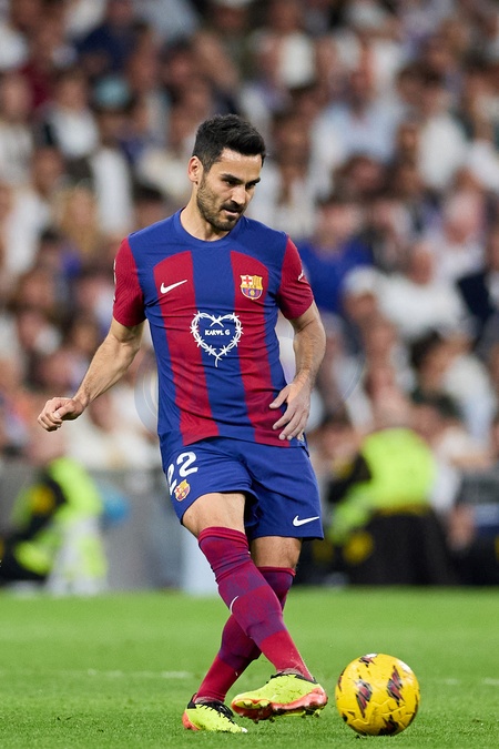 Ilkay Gundogan of FC Barcelona passes the ball during the LaLiga EA Sports match between Real Madrid and Barcelona FC at Stadium Santiago Bernabeu on April 21, 2024 in Madrid, Spain. (Photo by: Alvaro Medranda/ Panoramic)