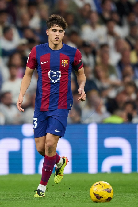 Pau Cubarsi of FC Barcelona in action during the LaLiga EA Sports match between Real Madrid and Barcelona FC at Stadium Santiago Bernabeu on April 21, 2024 in Madrid, Spain. (Photo by: Alvaro Medranda/ Panoramic)