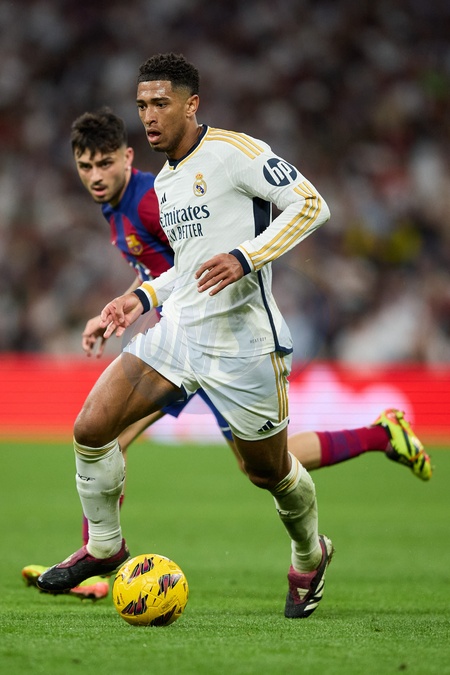 Jude Bellingham of Real Madrid CF in action during the LaLiga EA Sports match between Real Madrid and Barcelona FC at Stadium Santiago Bernabeu on April 21, 2024 in Madrid, Spain. (Photo by: Alvaro Medranda/ Panoramic)