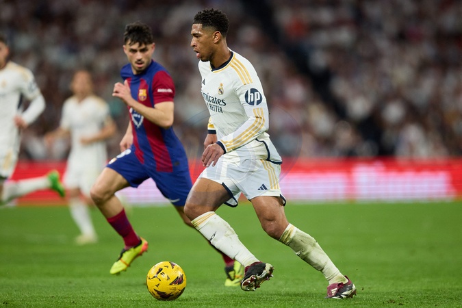 Jude Bellingham of Real Madrid CF in action during the LaLiga EA Sports match between Real Madrid and Barcelona FC at Stadium Santiago Bernabeu on April 21, 2024 in Madrid, Spain. (Photo by: Alvaro Medranda/ Panoramic)