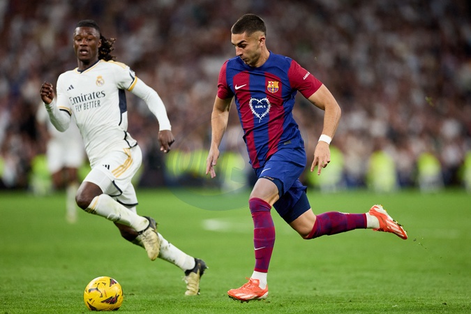 Ferran Torres of FC Barcelona runs with the ball during the LaLiga EA Sports match between Real Madrid and Barcelona FC at Stadium Santiago Bernabeu on April 21, 2024 in Madrid, Spain. (Photo by: Alvaro Medranda/ Panoramic)
