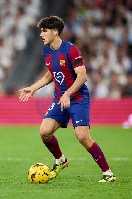 Pau Cubarsi of FC Barcelona in action during the LaLiga EA Sports match between Real Madrid and Barcelona FC at Stadium Santiago Bernabeu on April 21, 2024 in Madrid, Spain. (Photo by: Alvaro Medranda/ Panoramic)