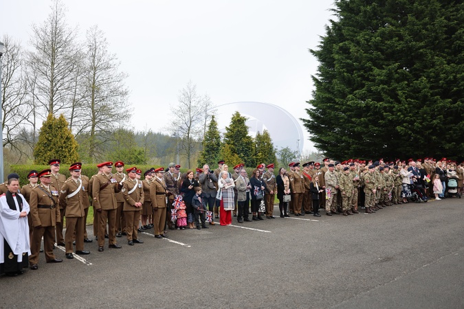 CATTERICK, ENGLAND - APRIL 22: A street-lining procession as Queen Camilla departs from a visit to The Royal Lancers on April 22, 2024 in Catterick, England. Queen Camilla undertakes her first visit to the Regiment since being appointed as their Colonel-in-Chief. The Queen's late father, Major Bruce Shand MC & Bar, served with the 12th Lancers during World War II., Credit:Chris Jackson / Avalon