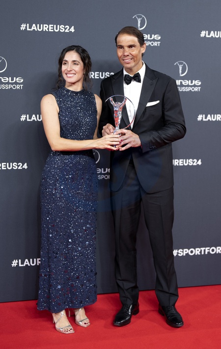 Rafael Nadal, Xisca Perrello from Nadal Foundation — Laureus World Sports Awards 2024 ceremony. Madrid - April 22, 2024