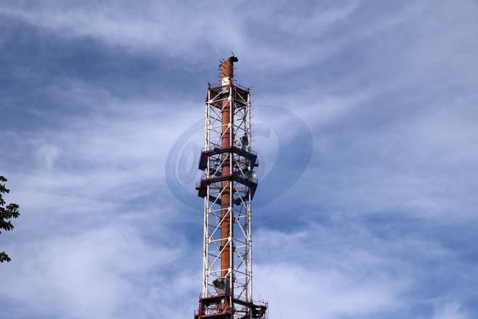KHARKIV, UKRAINE - APRIL 22, 2024 - A Russian missile attack partially destroys the Kharkiv TV tower, Kharkiv, northeastern Ukraine., Credit:Vyacheslav Madiyevskyy / Avalon