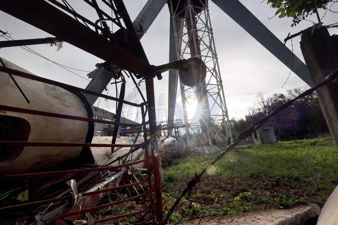 KHARKIV, UKRAINE - APRIL 22, 2024 - A Russian missile attack partially destroys the Kharkiv TV tower, Kharkiv, northeastern Ukraine., Credit:Vyacheslav Madiyevskyy / Avalon