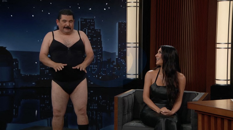 Kim Kardashian wyjawia Jimmy’emu Kimmelowi swoje plany wprowadzenia na rynek linii bielizny modelującej dla mężczyzn