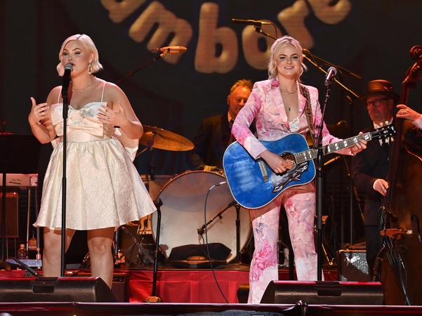Kendra Slaubaugh and Krista Slaubaugh of Tigirlily Gold onstage at "Walkin' After Midnight: The Music of Patsy Cline” Concert at the Ryman Auditorium on April 22, 2024 in Nashville, TN© Tammie Arroyo / AFF-USA.com