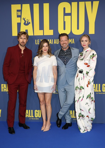 Ryan Gosling, Kelly McCormick, David Leitch et Emily Blunt - Photocall du film "Fall Guy" au cinema UGC Normandie à Paris le 23 avril 2024. © Coadic Guirec/Bestimage Photocall of the film "Fall Guy” at the UGC Normandie cinema in Paris on April 23, 2024.