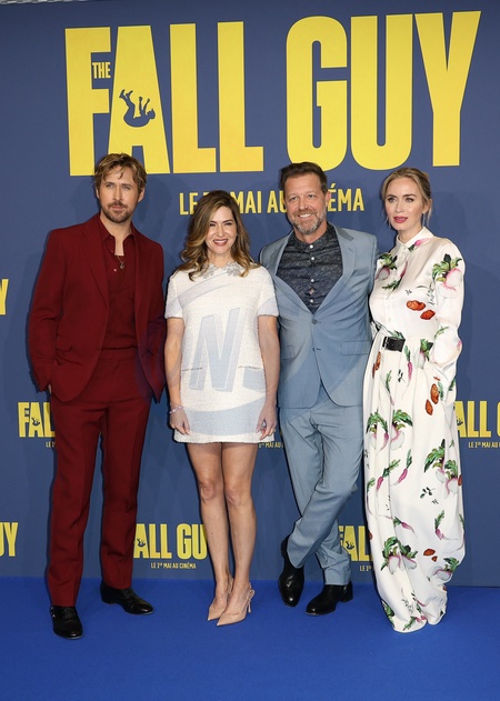Ryan Gosling, Kelly McCormick, David Leitch et Emily Blunt - Photocall du film "Fall Guy" au cinema UGC Normandie à Paris le 23 avril 2024. © Coadic Guirec/Bestimage Photocall of the film "Fall Guy” at the UGC Normandie cinema in Paris on April 23, 2024.