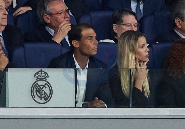 Rafael Nadal na trybunach podczas meczu EA Sports LaLiga pomiędzy Realem Madryt i FC Barcelona (3-2) na stadionie Santiago Bernabeu w Madrycie