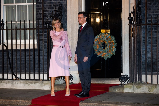 Espagne: Maria Begona Sanchez, femme de Pedro Sánchez, visée par une enquête pour corruption - Pedro Sanchez et sa femme Maria Begona Gomez Fernandez lors d'une réception chez le Premier Ministre Britannique B. Johnson au 10 Downing Street. Royaume-Uni, Londres, 3 décembre 2019. © Alain Rolland/Imagebuzz/Bestimage Spain Prime Minister Pedro Sanchez and wife arrive for a reception at 10 Downing Street in London, Britain, on Dec. 3, 2019.