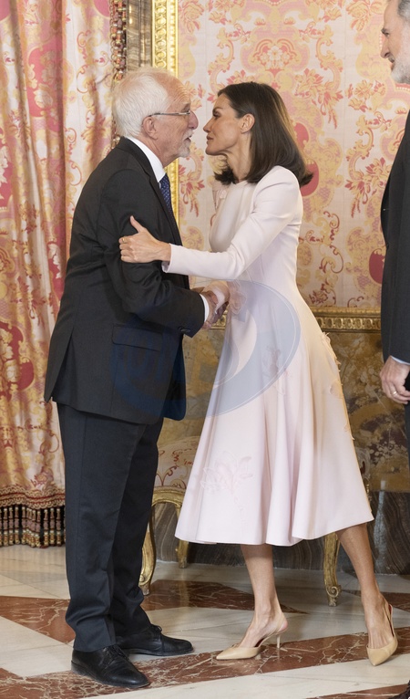 Luis Mateo Diez et la reine Letizia d'Espagne - Le roi Felipe VI et la reine Letizia organisent un déjeuner à l'occasion de la remise du Prix littéraire Cervates 2024 à L.M.Diez au Palais Royal de Madrid, le 24 avril 2024. Cervantes 2024 Literary Award winner Luis Mateo Diez - King Felipe VI and Queen Letizia host a lunch in ocasión of the Cervates 2024 Literary Award at The Royal Palace in Madrid. April 24th, 2024.