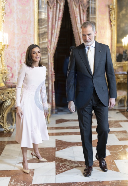 Le roi Felipe VI et la reine Letizia organisent un déjeuner à l'occasion de la remise du Prix littéraire Cervates 2024 à Luis Mateo Diez au Palais Royal de Madrid