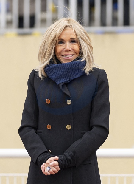 Brigitte Macron - Match de football caritatif du Variétés club de France au profit de l'opération Pièces jaunes au stade Bernard Giroux à Plaisir, France, le 24 janvier 2024. Le match a permis de récolter 57.500€. © Pierre Perusseau/Bestimage French President during the Varietes Club charity football match to benefit children in hospital at the Bernard Giroux stadium, in Plaisir near Paris, France, on April 24, 2024. The match raised €57,500.