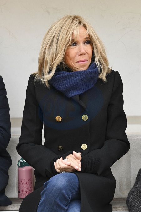 Brigitte Macron - Match de football caritatif du Variétés club de France au profit de l'opération Pièces jaunes au stade Bernard Giroux à Plaisir, France, le 24 janvier 2024. Le match a permis de récolter 57.500€. © Pierre Perusseau/Bestimage French President during the Varietes Club charity football match to benefit children in hospital at the Bernard Giroux stadium, in Plaisir near Paris, France, on April 24, 2024. The match raised €57,500.