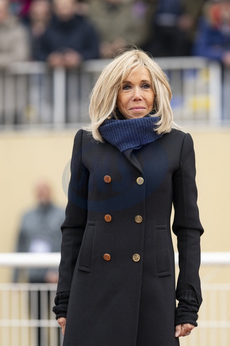 Brigitte Macron - Match de football caritatif du Variétés club de France au profit de l'opération Pièces jaunes au stade Bernard Giroux à Plaisir, France, le 24 janvier 2024. Le match a permis de récolter 57.500€. © Pierre Perusseau/Bestimage French President during the Varietes Club charity football match to benefit children in hospital at the Bernard Giroux stadium, in Plaisir near Paris, France, on April 24, 2024. The match raised €57,500.