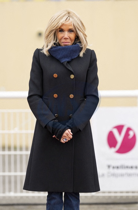 Brigitte Macron - Match de football caritatif du Variétés club de France au profit de l'opération Pièces jaunes au stade Bernard Giroux à Plaisir, France, le 24 janvier 2024. Le match a permis de récolter 57.500€. © Pierre Perusseau/Bestimage French President during the Varietes Club charity football match to benefit children in hospital at the Bernard Giroux stadium, in Plaisir near Paris, France, on April 24, 2024. The match raised €57,500.