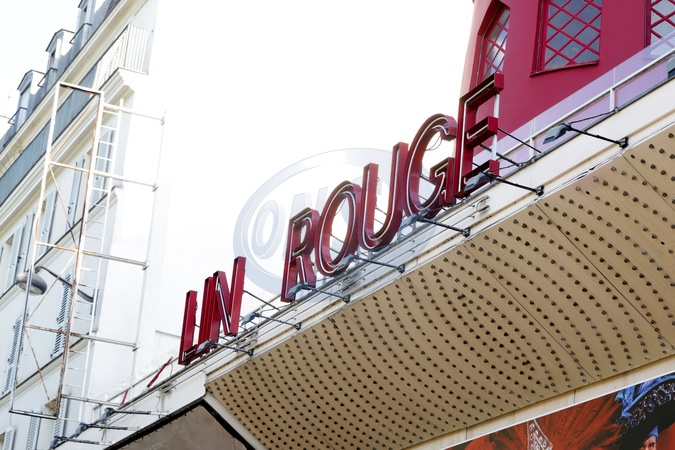 Moulin Rouge w Paryżu, poranek po upadku skrzydeł młyna i jego litery „MOU”