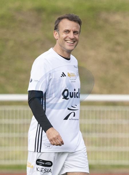 Le président Emmanuel Macron dispute un match de charité avec le Variétés Club de France au profit des Pièces Jaunes à Plaisir
