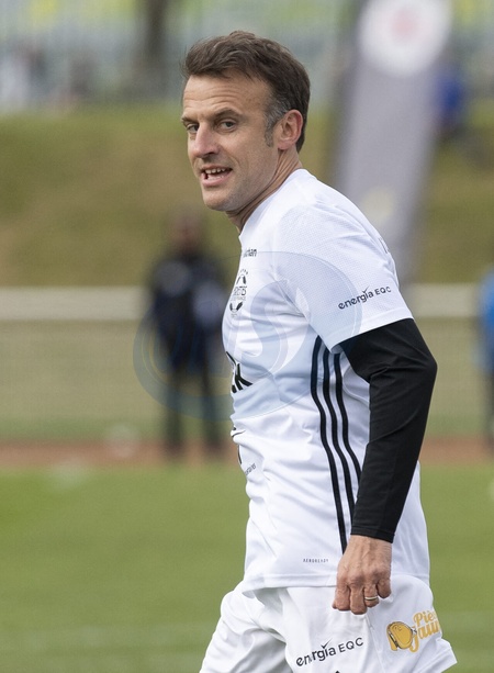 Le président Emmanuel Macron dispute un match de charité avec le Variétés Club de France au profit des Pièces Jaunes à Plaisir