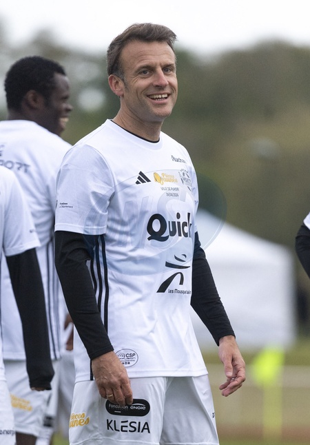 Le président Emmanuel Macron dispute un match de charité avec le Variétés Club de France au profit des Pièces Jaunes à Plaisir