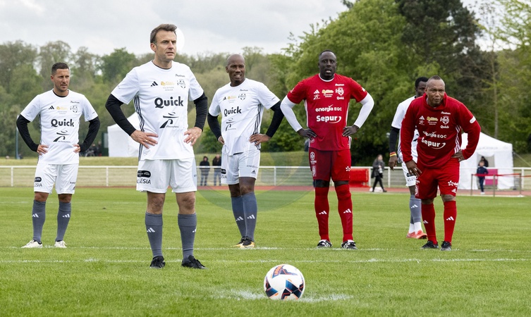 Le président Emmanuel Macron dispute un match de charité avec le Variétés Club de France au profit des Pièces Jaunes à Plaisir