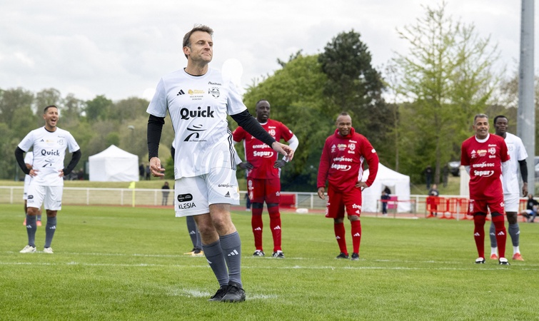 Le président Emmanuel Macron dispute un match de charité avec le Variétés Club de France au profit des Pièces Jaunes à Plaisir