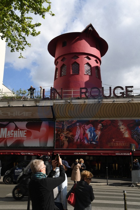 Moulin Rouge w Paryżu, poranek po upadku skrzydeł młyna i jego litery „MOU”