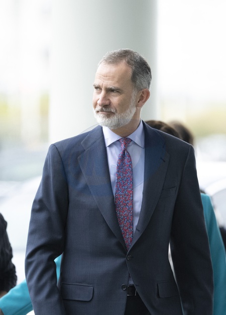 Le roi Felipe VI d'Espagne arrive à la session de talents "Empower votre créativité à travers l'art'', au Botín Center de Santander, Cantabria, Espagne, le 25 avril 2024. King Felipe VI arrives at the Talent Session 'Empower your creativity through art', at the Botín Center, on April 25, 2024, in Santander, Cantabria (Spain). The activity is part of the "Princess of Girona Foundation Expedition to the Botín Center'', with the participation of 20 young people with the aim of discovering how through art we can enhance emotional and creative skills, a workshop that allows to know the scientific project developed by the Botín Center with Yale University and IE and that supports the results produced by working emotional intelligence and creativity in the activities, workshops and courses developed by the center. APRIL 25;2024 Juanma Serrano / Europa Press 04/25/2024