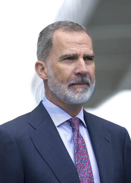 Le roi Felipe VI d'Espagne arrive à la session de talents "Empower votre créativité à travers l'art'', au Botín Center de Santander, Cantabria, Espagne, le 25 avril 2024. King Felipe VI arrives at the Talent Session 'Empower your creativity through art', at the Botín Center, on April 25, 2024, in Santander, Cantabria (Spain). The activity is part of the "Princess of Girona Foundation Expedition to the Botín Center'', with the participation of 20 young people with the aim of discovering how through art we can enhance emotional and creative skills, a workshop that allows to know the scientific project developed by the Botín Center with Yale University and IE and that supports the results produced by working emotional intelligence and creativity in the activities, workshops and courses developed by the center. APRIL 25;2024 Juanma Serrano / Europa Press 04/25/2024
