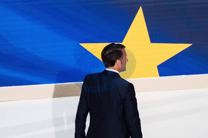 Prezydent Republiki Emmanuel Macron wygłasza dyskusje na temat Europy na uniwersytecie na Sorbonie w Paryżu