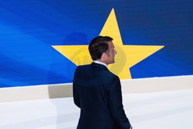 Prezydent Republiki Emmanuel Macron wygłasza dyskusje na temat Europy na uniwersytecie na Sorbonie w Paryżu