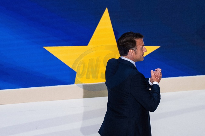 Prezydent Republiki Emmanuel Macron wygłasza dyskusje na temat Europy na uniwersytecie na Sorbonie w Paryżu