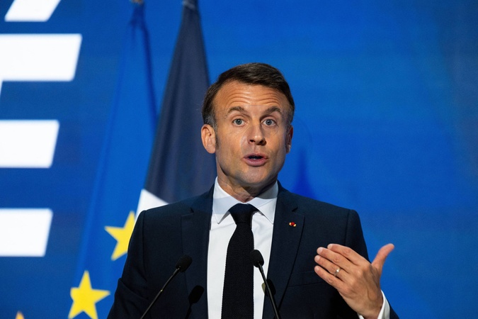 Prezydent Republiki Emmanuel Macron wygłasza dyskusje na temat Europy na uniwersytecie na Sorbonie w Paryżu