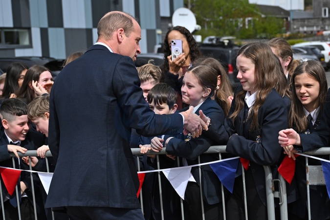 Britain's Prince William, Prince of Wales, speaks with schoolchildren after his visit to St. Michael's Church of England High School in Rowley Regis, central England on April 25, 2024. During his visit Britain's Prince William, Prince of Wales will learn about the award-winning student-led initiatives available to pupils to support their mental health and wellbeing., Credit:OLI SCARFF / Avalon