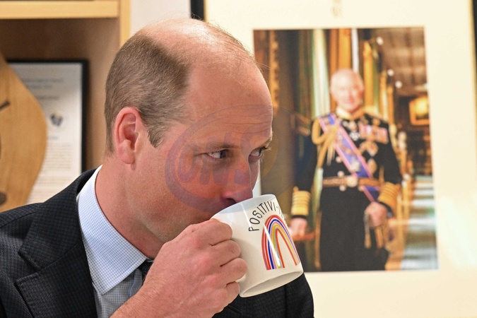 A photo of Britain's King Charles III overlooks a discussion between Britain's Prince William, Prince of Wales and students of the Matrix Project, during a visit to St. Michael's Church of England High School in Rowley Regis, central England on April 25, 2024. During his visit Britain's Prince William, Prince of Wales will learn about the award-winning student-led initiatives available to pupils to support their mental health and wellbeing., Credit:OLI SCARFF / Avalon