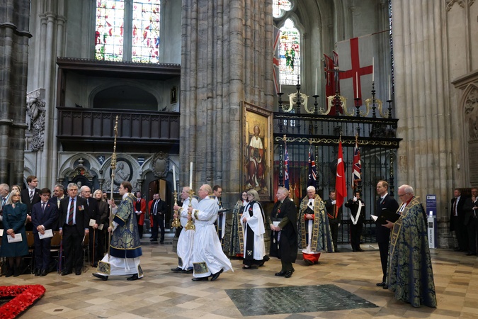 Britain's Prince Edward, Duke of Edinburgh, attends a commemoration service next to Dean of Westminster, priest David Hoyle on Anzac Day at Westminster Abbey, London, Britain April 25, 2024., Credit:Belinda Jiao / Avalon