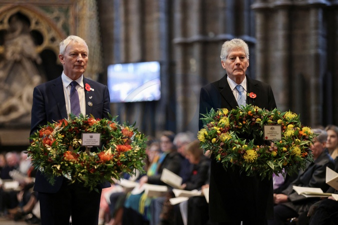 New Zealand's High Commissioner to the United Kingdom Phil Goff and Australia's High Commissioner to the United Kingdom Stephen Smith lay wreaths at a commemoration service on Anzac Day at Westminster Abbey, London, Britain April 25, 2024., Credit:Belinda Jiao / Avalon