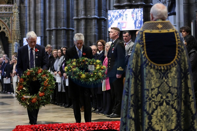 New Zealand's High Commissioner to the United Kingdom Phil Goff and Australia's High Commissioner to the United Kingdom Stephen Smith lay wreaths at a commemoration service on Anzac Day at Westminster Abbey, London, Britain April 25, 2024., Credit:Belinda Jiao / Avalon