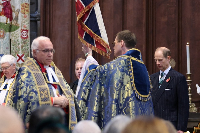 Britain's Prince Edward, Duke of Edinburgh, attends a commemoration service next to Dean of Westminster, priest David Hoyle, on Anzac Day at Westminster Abbey, London, Britain April 25, 2024., Credit:Belinda Jiao / Avalon
