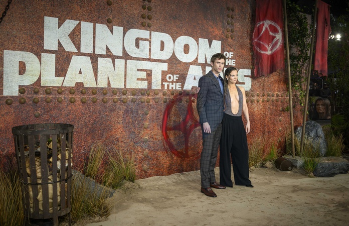 Freya Allan and Owen Teague attend the premiere of Kingdom Of The Planet of the Apes UK Launch at the BFI IMAX Waterloo on April 25, 2024., Credit:Tina Korhonen / Avalon