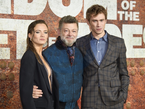Freya Allan, Andy Serkis and Owen Teague attend the premiere of Kingdom Of The Planet of the Apes UK Launch at the BFI IMAX Waterloo on April 25, 2024., Credit:Tina Korhonen@.All rights reserved; Tina Korhonen / Avalon